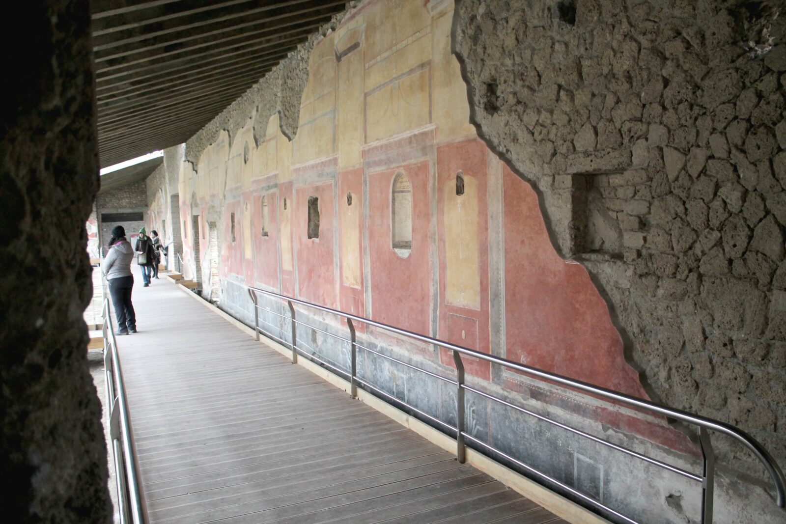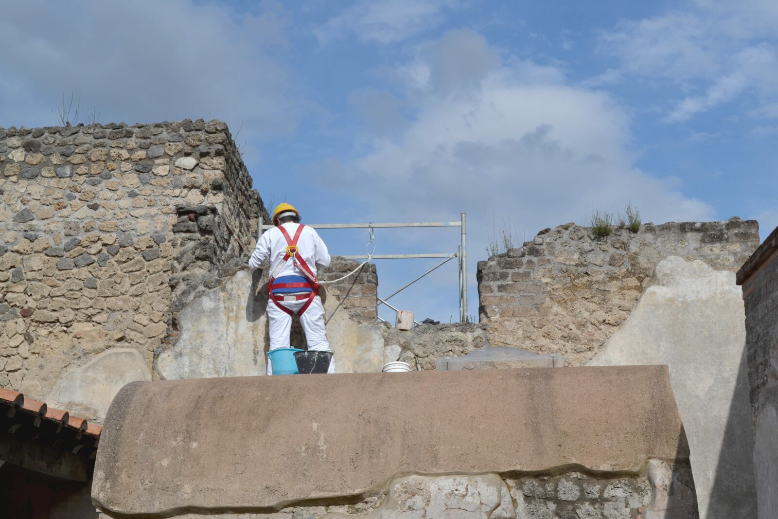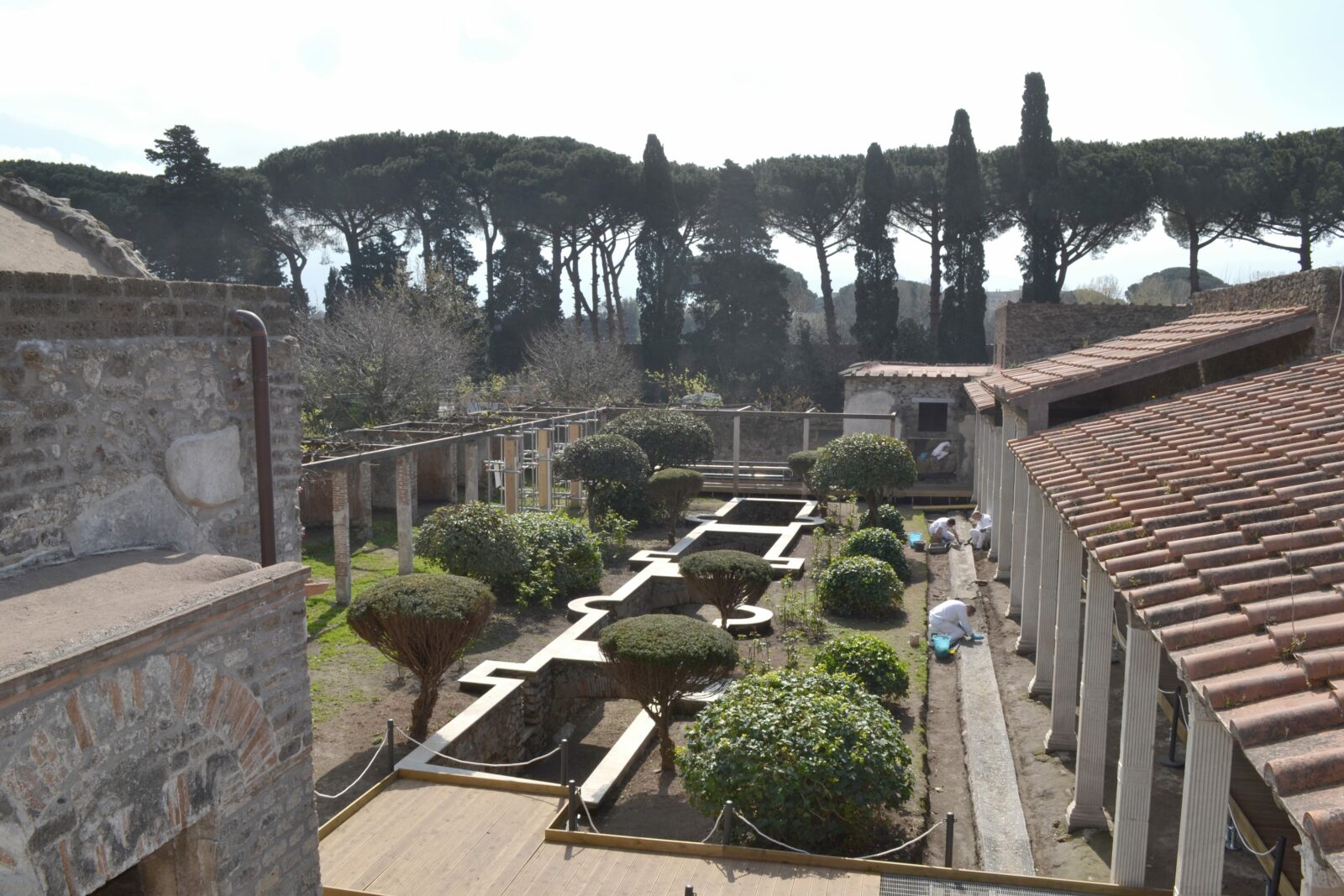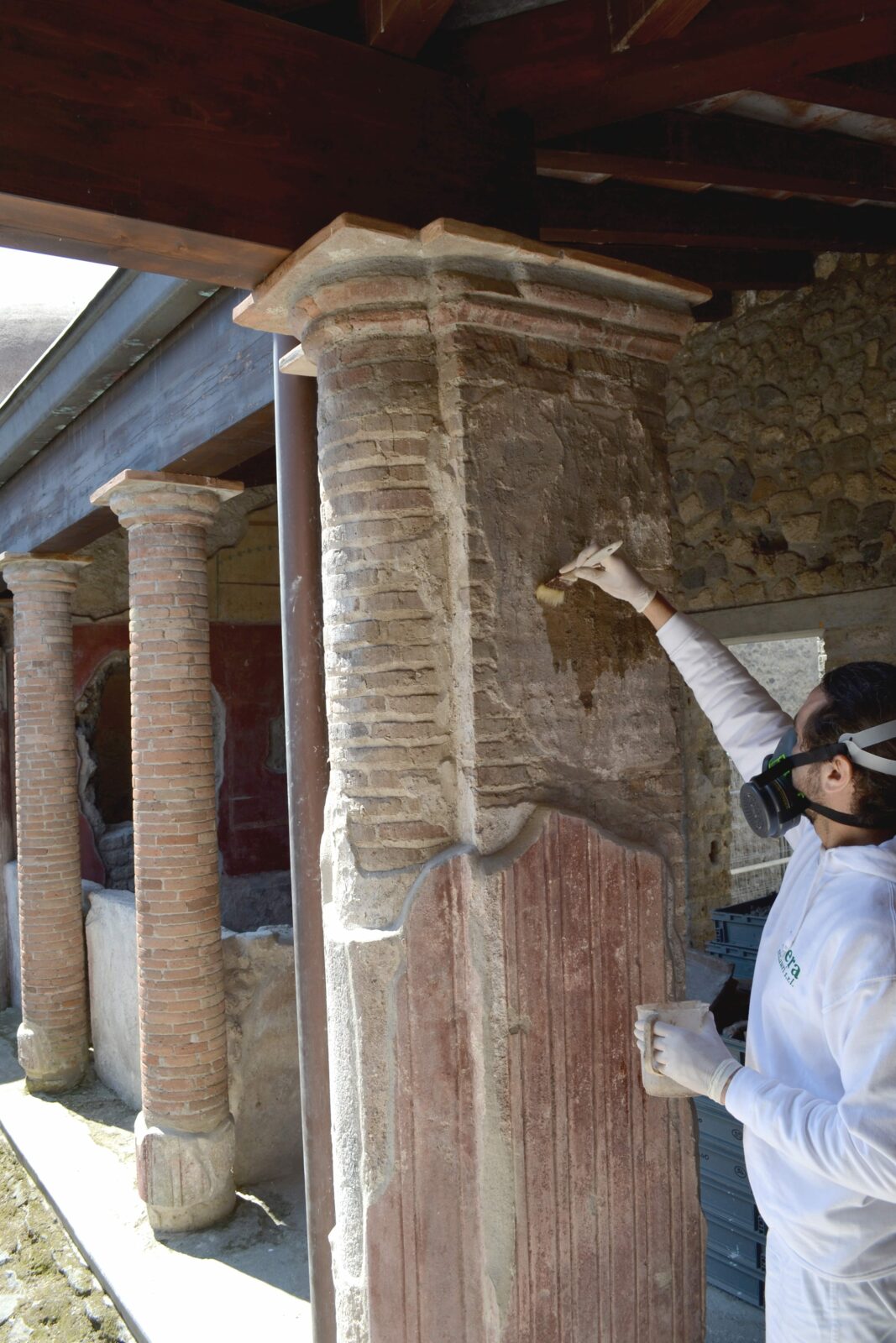 L’intervento ha riguardato la messa in sicurezza e il completamento degli apparati decorativi, pittorici e pavimentali del celebre complesso dei Praedia di Giulia Felice. Il cantiere è stato organizzato in tre macro-aree strategiche, coprendo l’intera articolazione del sito: dal maestoso Porticato sul Viridarium all’area dell’Impluvium, fino al raffinato quartiere termale.