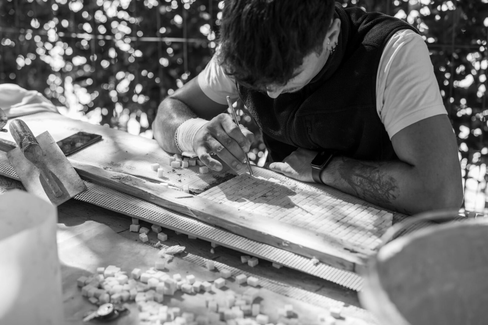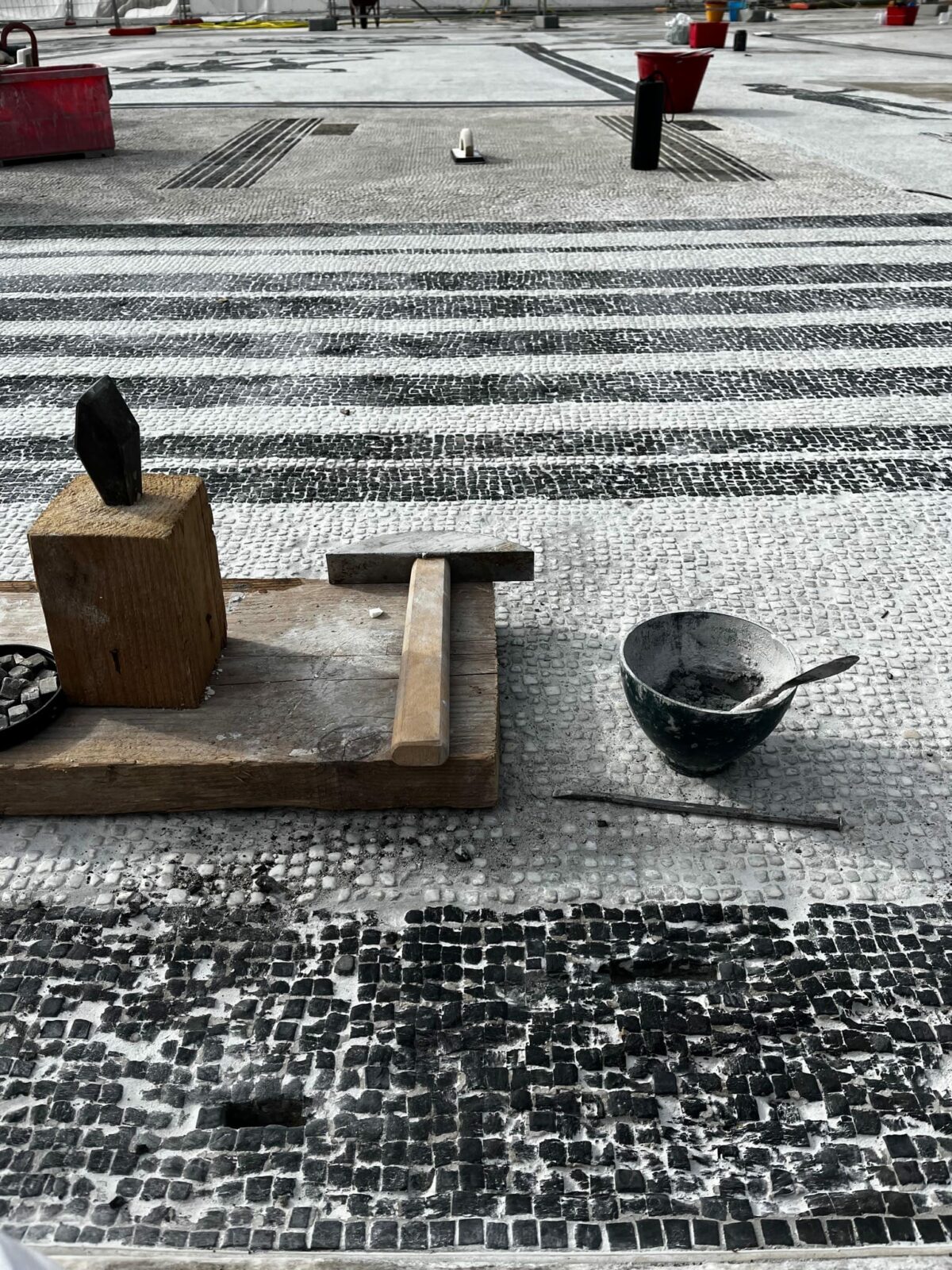 2. Consolidamento e Adesione: Ristabilimento dell’adesione delle sezioni al massetto di sottofondo e sostituzione delle tessere fratturate.