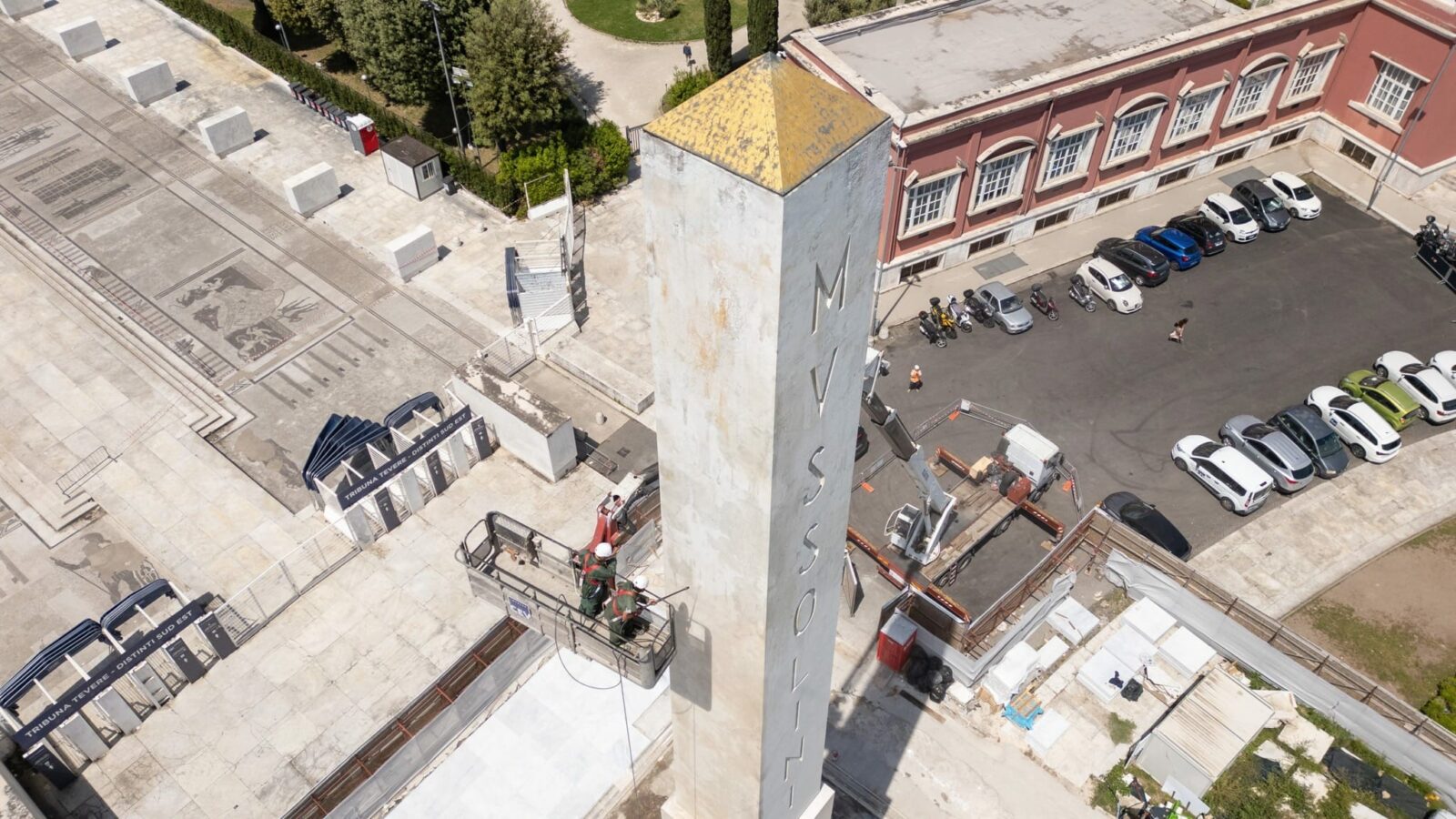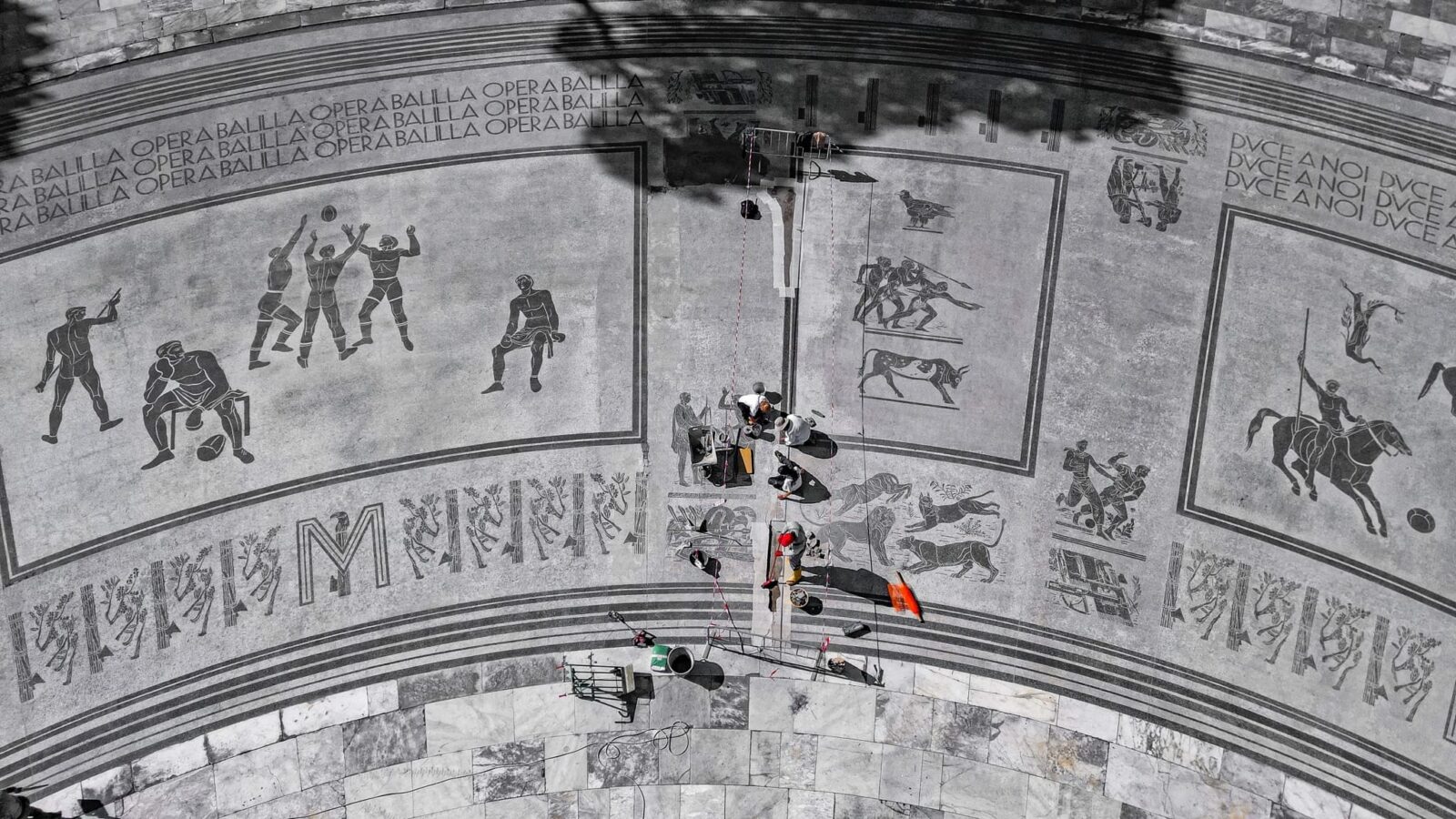 L’intervento si inserisce in un prestigioso programma di recupero che coinvolge il Viale dell’Impero, il Piazzale dell’Obelisco e la Fontana della Sfera al Foro Italico di Roma. L’obiettivo principale è stato il restauro conservativo del mosaico più grande del mondo, realizzato in marmo di Carrara, operazione che ha richiesto l’allestimento di un laboratorio di restauro ad hoc in cantiere.