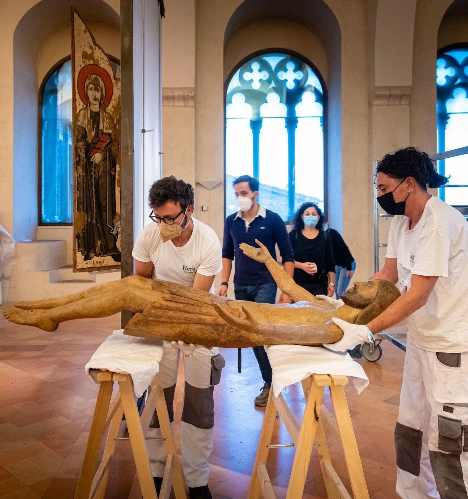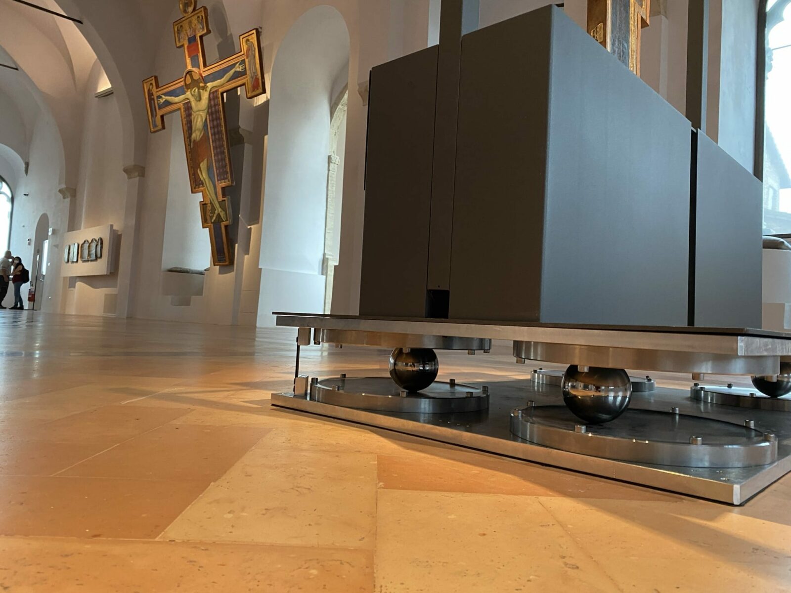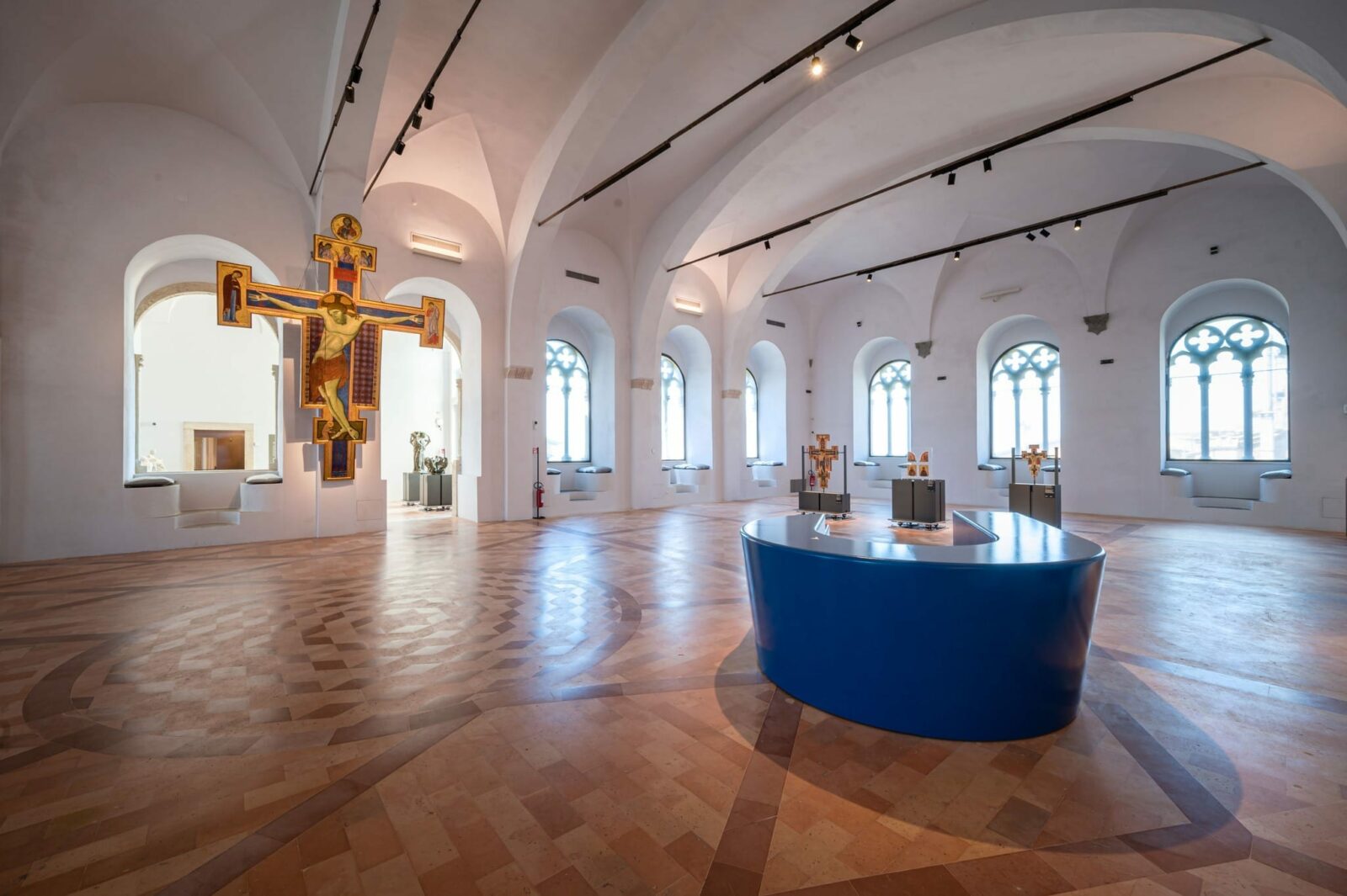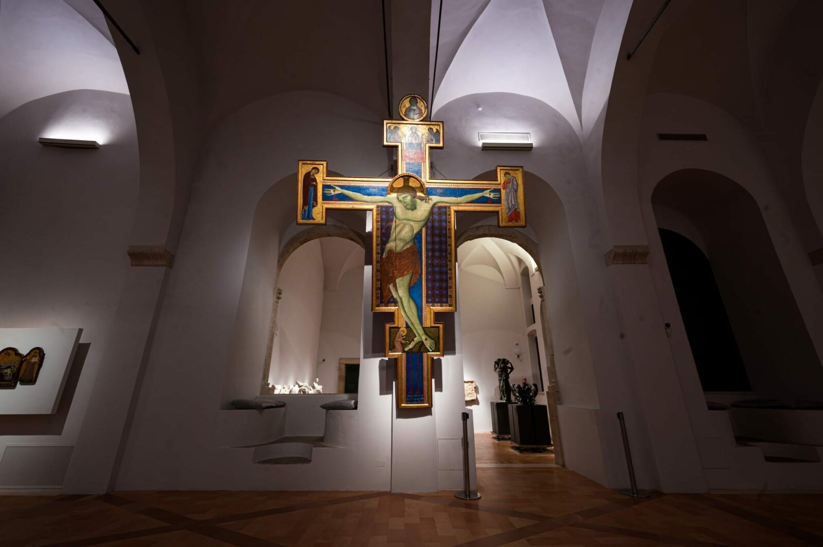 L’allestimento ha previsto soluzioni espositive ad hoc per opere del Perugino, Pinturicchio e Piero della Francesca, integrando sistemi antiribaltamento e climabox autoilluminati: