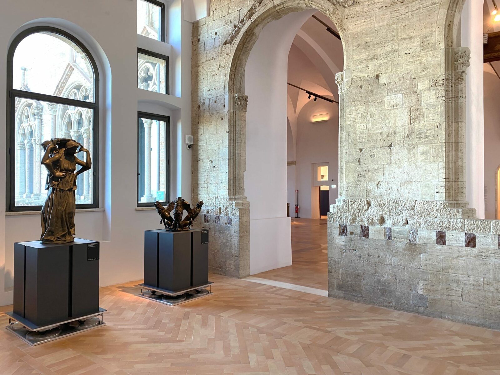 - Protezione e Sicurezza: Teche in vetro con rimozione verticale e basi antisismiche per le sculture esposte singolarmente.