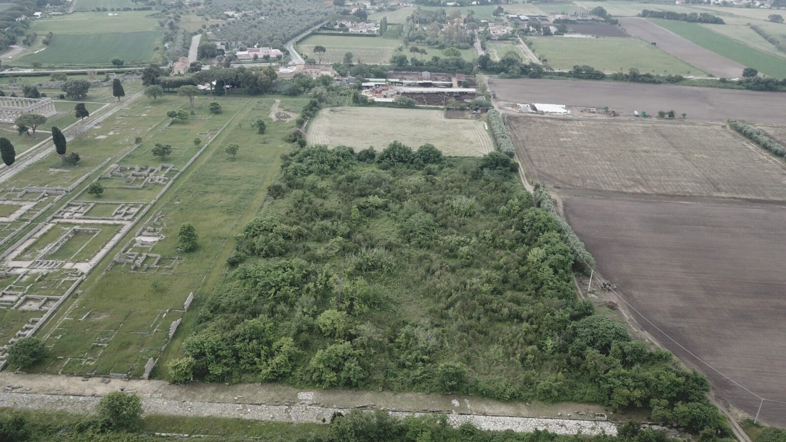 Focus sulle insulae romane (33.132 m²) e sulla cinta muraria sud-occidentale.