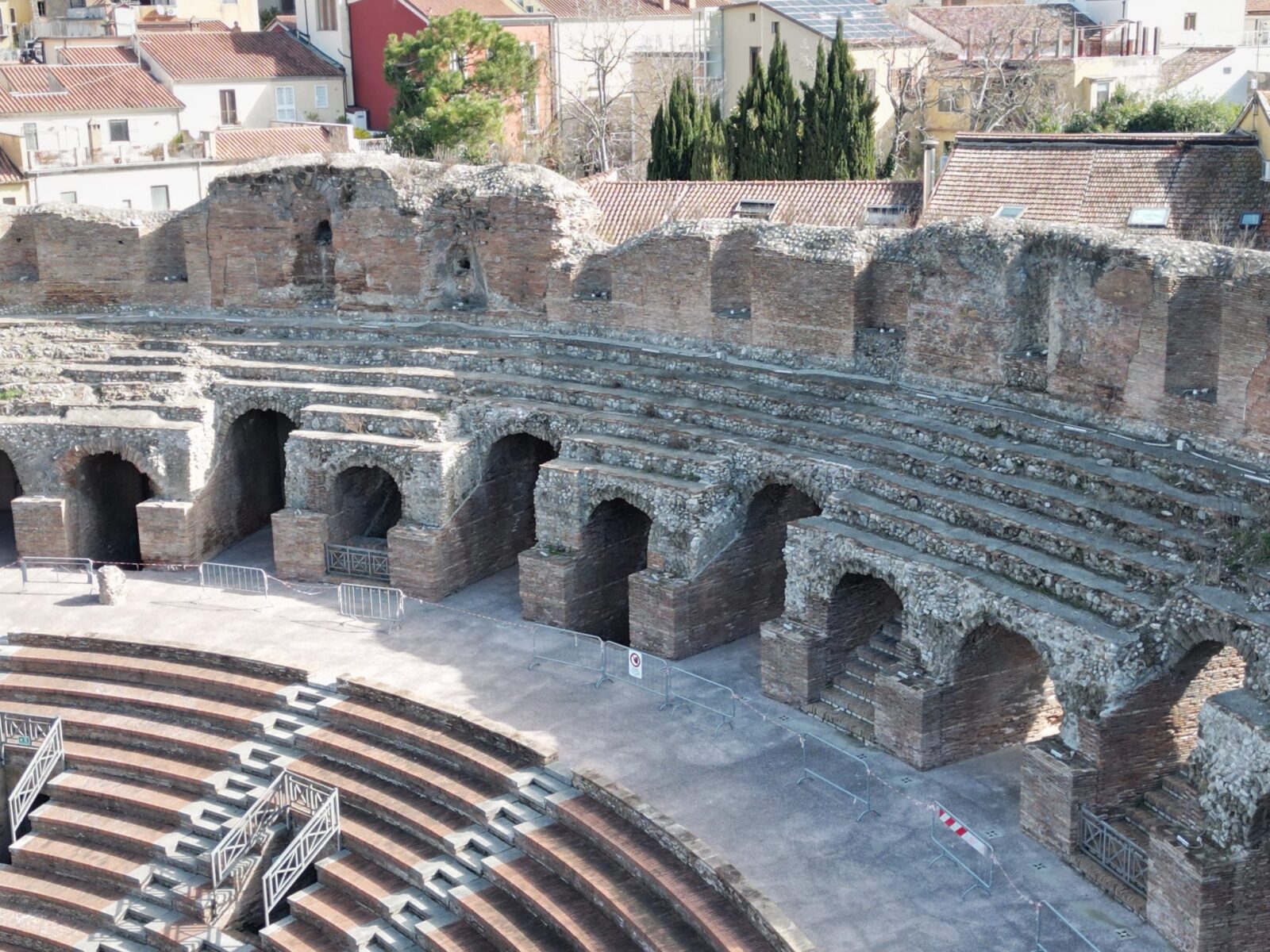 Attraverso una meticolosa campagna di scavo stratigrafico, sono state riportate alla luce le gradonate originali della cavea risalenti al II sec. d.C., restituendo al pubblico la visione autentica della struttura imperiale. Le indagini hanno inoltre permesso il rinvenimento di alcune sepolture, preziose testimonianze delle fasi di riutilizzo dell’area in epoca post-classica.